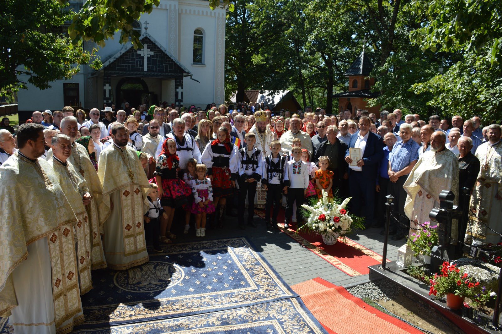 Sfânta și Dumnezeiasca Liturghie a fost oficiată de Preasfințitul Părinte Timotei Sătmăreanul, Arhiereu-vicar al Episcopiei Ortodoxe Române a Maramureșului și Sătmarului, în prezența unui sobor de preoți și diaconi, a numeroși credincioși, precum și a reprezentanților autorităților locale și județene. Atmosfera solemnă a fost înălțată de Grupul Psaltic „Sfinții Martiri Brâncoveni”, coordonat de teologul Vlad Pop, care a oferit răspunsurile liturgice, contribuind la frumusețea și profunzimea slujbei.