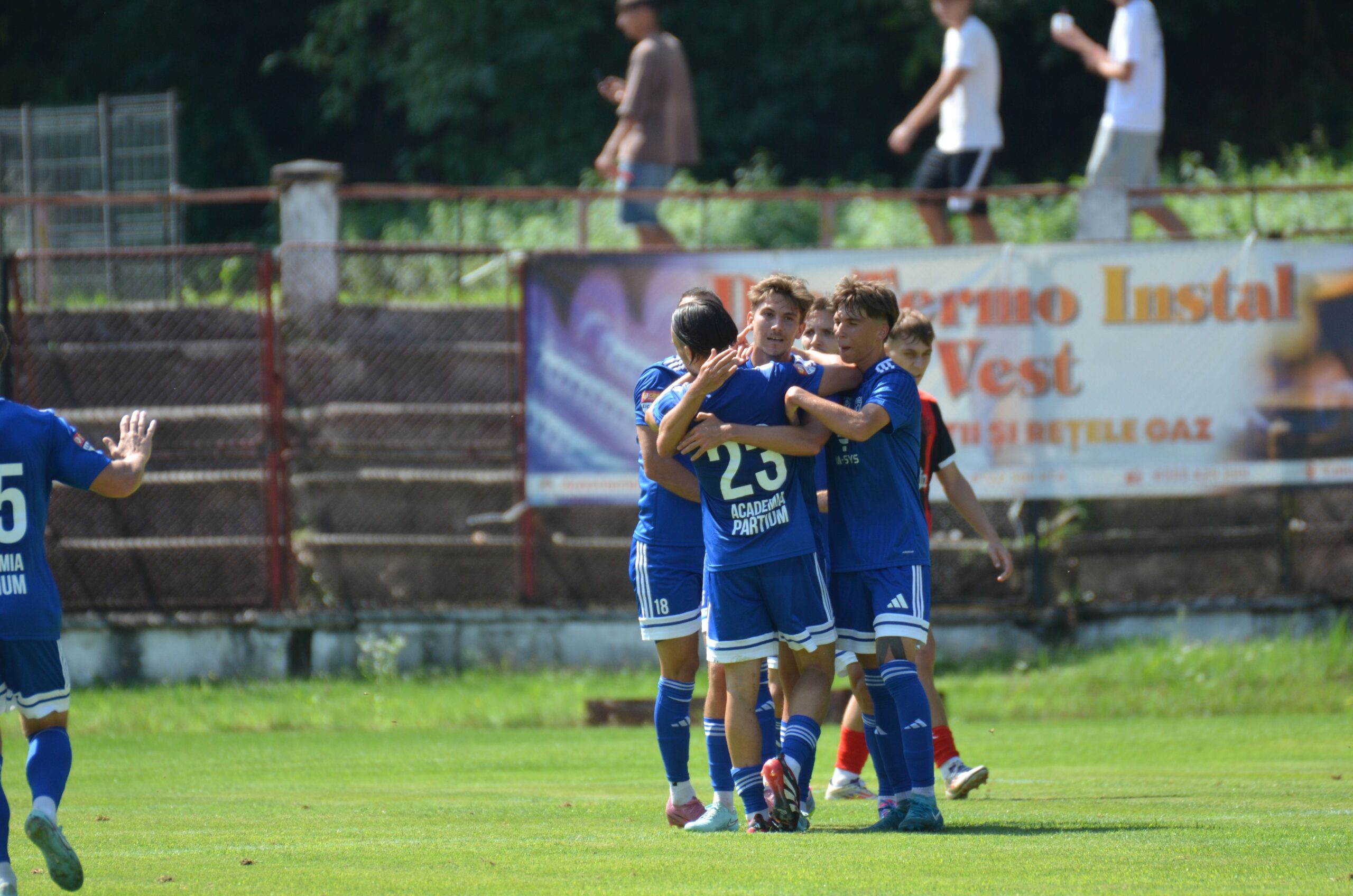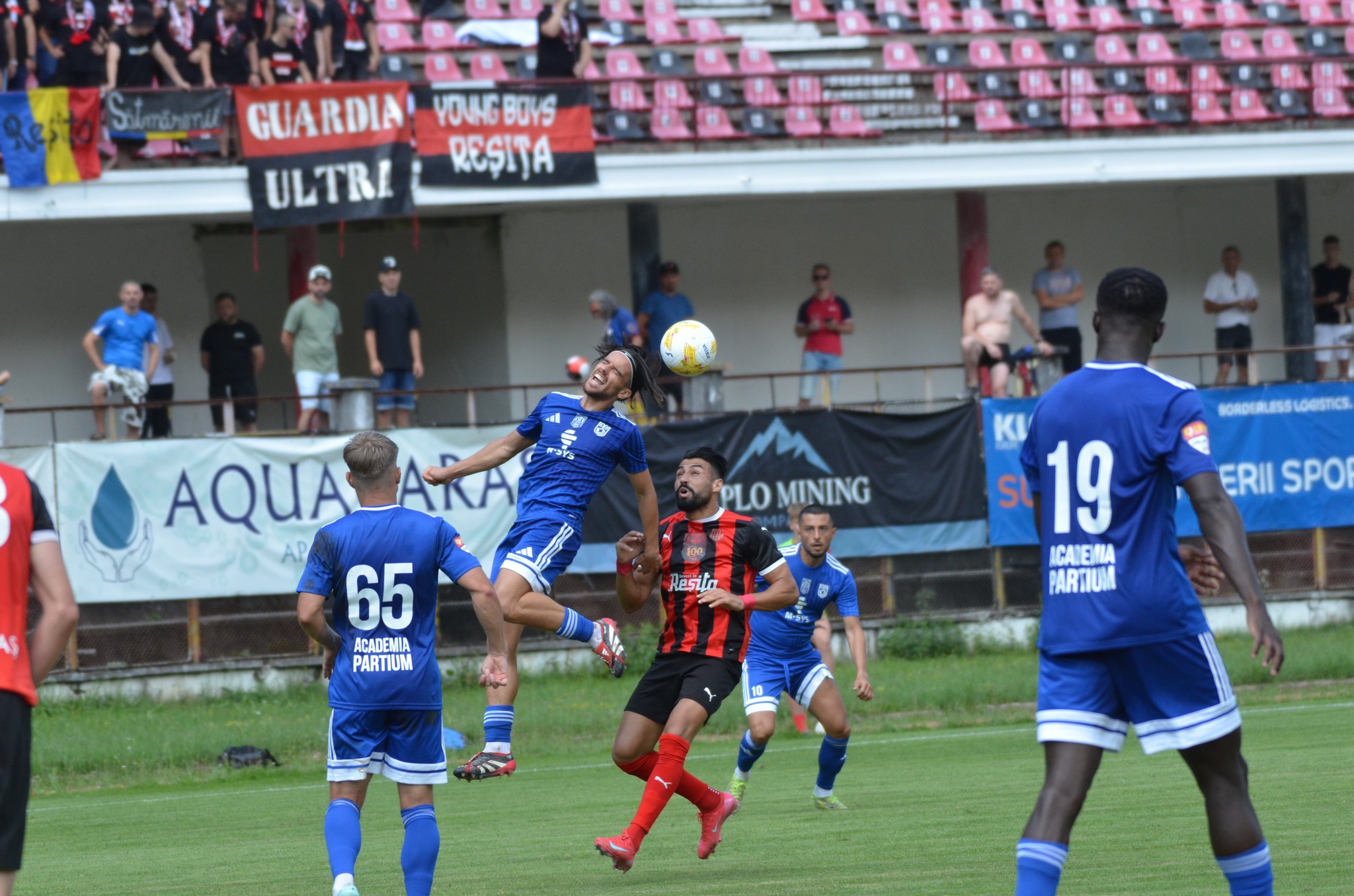 Nou-promovata din Satu Mare a început curajos și a dominat prima jumătate de oră. În minutul 23, Alin Văsălie a deschis scorul pentru Olimpia, finalizând din apropiere după o fază creată pe flancul stâng. Reșița a reacționat imediat: doar cinci minute mai târziu, Marius Cioiu a centrat ideal pentru Modan, care a restabilit egalitatea cu un șut precis la colțul lung.