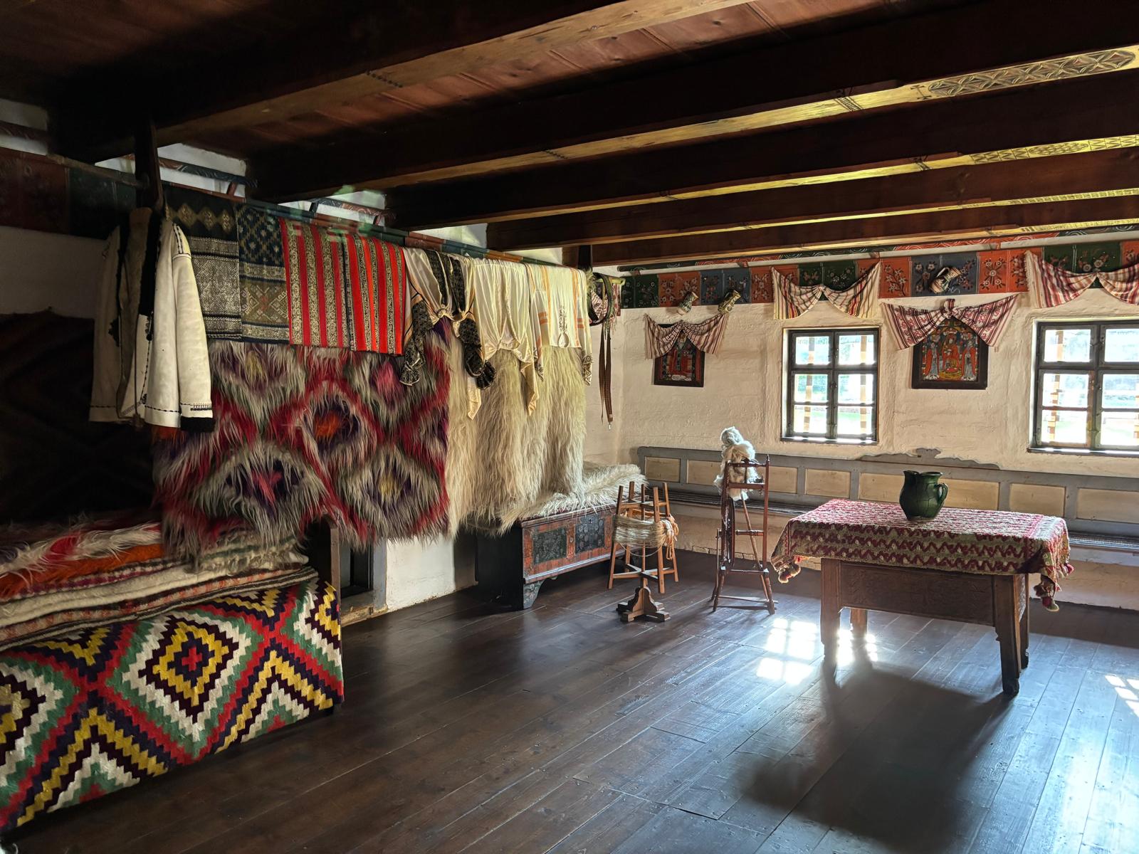 (MUZEUL NAȚIONAL BRAN: Secția Etnografică în Aer Liber (Muzeul Satului Brănean), interior din Casa cu ocol -”casa mare”, fotografie realizată de Anemona Todor)