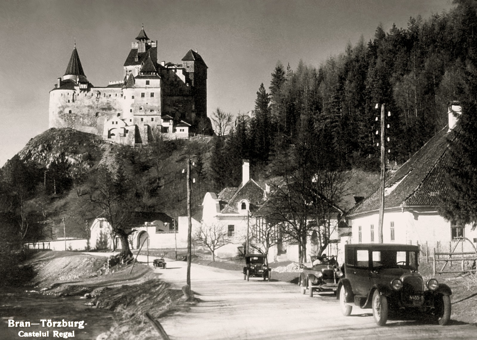(Carte poștală ilustrată: Castelul Bran și clădirile Vămii Medievale; fotografie realizată în anul 1934; Fotografie din colecția Muzeului Național Bran)