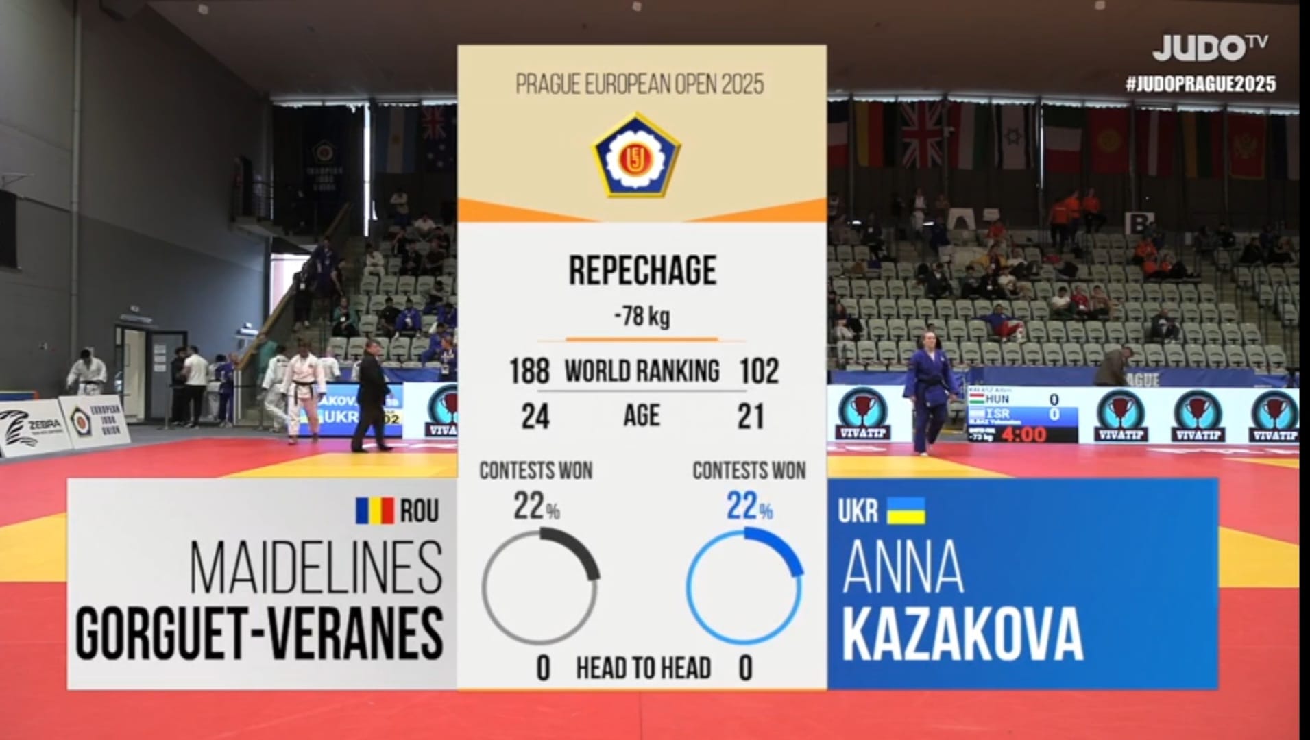 În lupta pentru medalia de bronz, reprezentanta CSM Olimpia Satu Mare a întâlnit o sportivă din Germania. După un duel foarte strâns, decis în prelungiri, Gorguet a pierdut la limită și s-a clasat pe locul 5.
