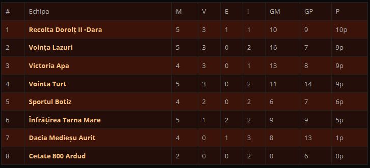 - Echipa din Orașu Nou are punctaj maxim după șase etape disputate