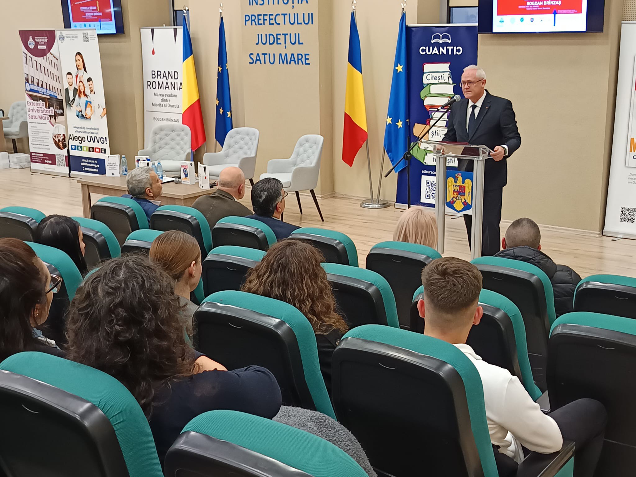 Instituția Prefectului Județului Satu Mare a găzduit astăzi conferința „Afaceri și valori – în epoca mass-mediei infinite”, eveniment organizat de Universitatea de Vest „Vasile Goldiș” din Arad și Editura Cuantic.