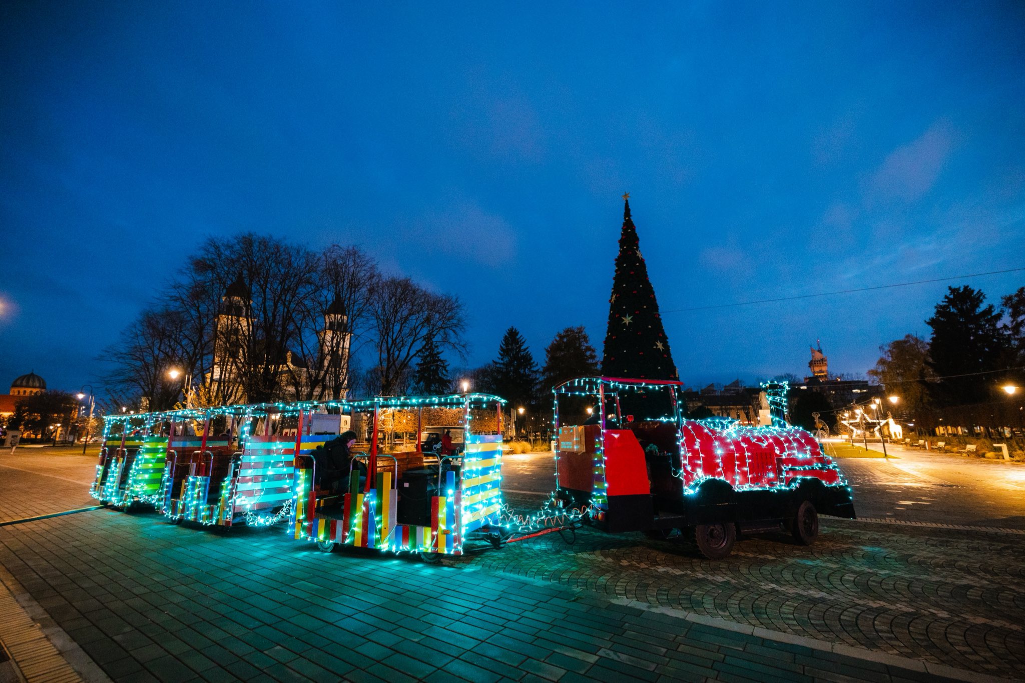 Atmosfera de sărbătoare prinde viață în centrul municipiului Satu Mare: Trenulețul Moșului a sosit și este gata pentru primele sale călătorii magice prin Târgul de Crăciun!