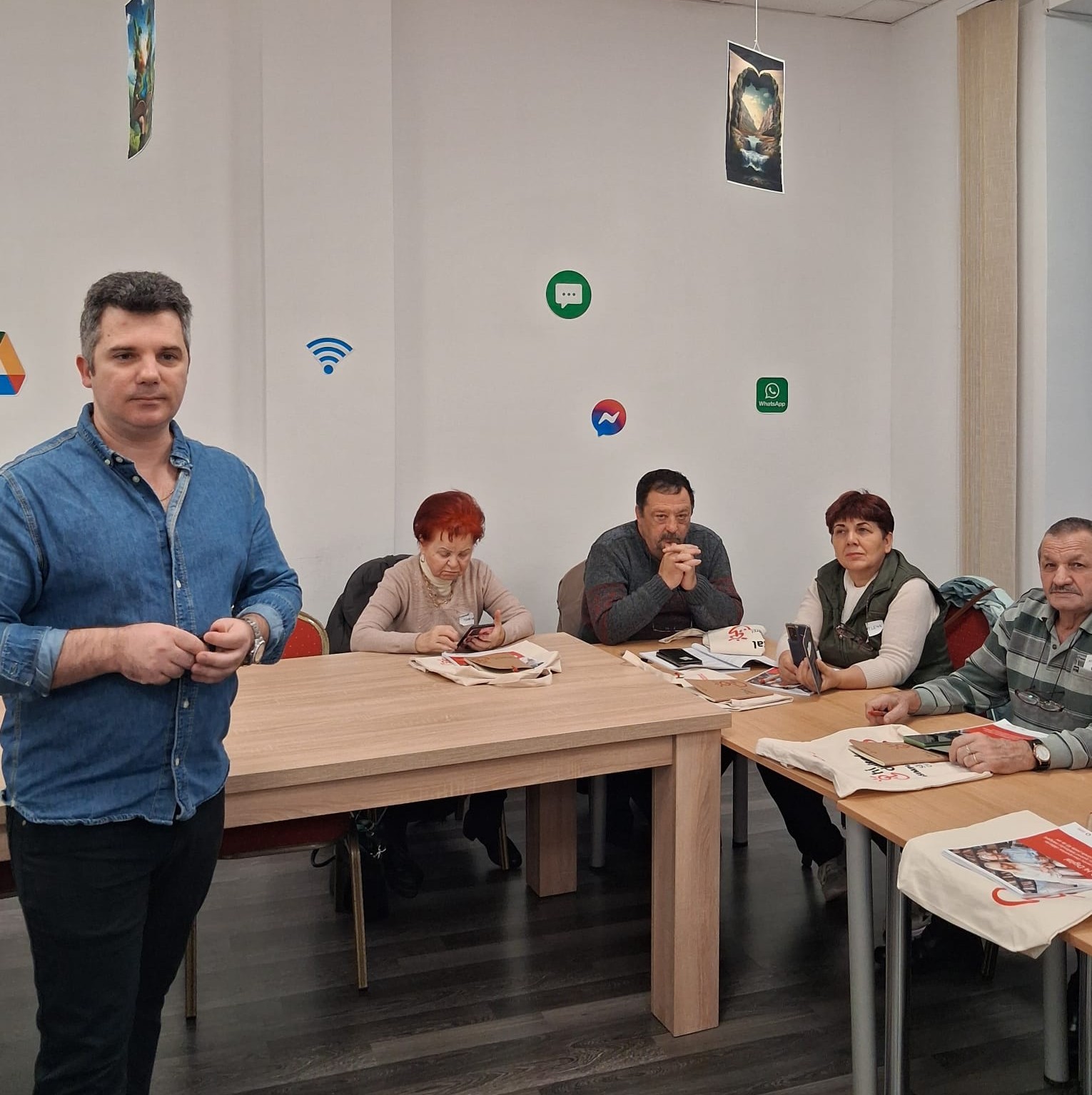 Tema zilei a inclus noțiuni esențiale: ce este internetul, felurile în care ne putem conecta, modurile sigure de a căuta informații utile și cum poate fi partajat un link către cei dragi. Seniorii s-au arătat interesați, au adresat întrebări și au participat activ la exercițiile practice.