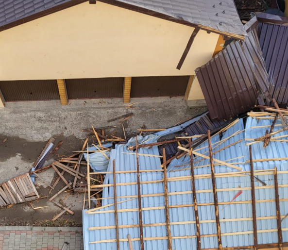 În data de 28.12, în jurul orei 15.00, prin Sistemul Național Unic pentru Apeluri de Urgență 112, a fost sesizată o situație de urgență constând în degajarea unor elemente de construcție (bucată de acoperiș – tablă și placaj) desprinse, existând pericol iminent de cădere peste autovehiculele parcate, în municipiul Satu Mare, str. Dariu Pop.