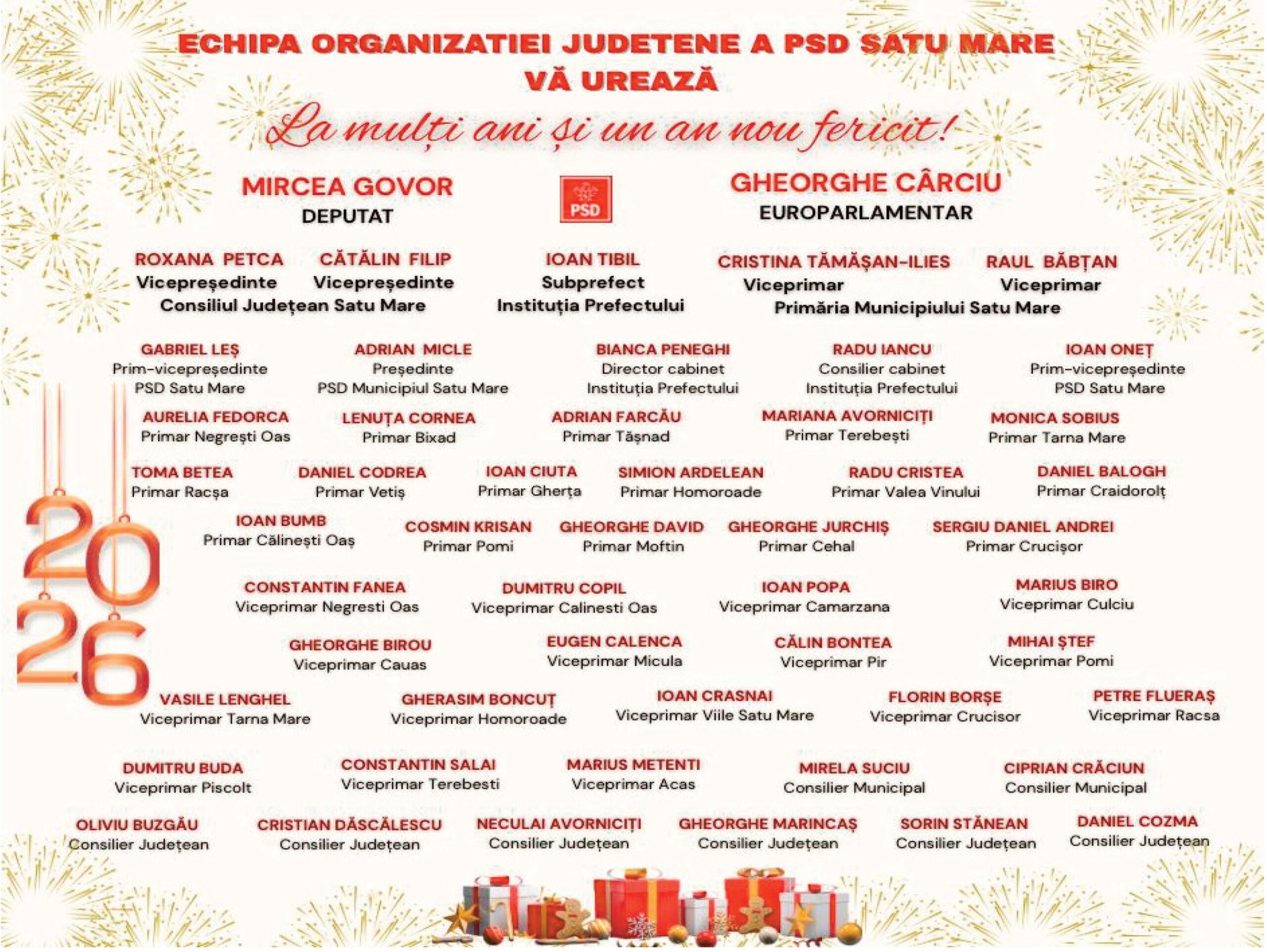 Felicitări de AN NOU 2026 - INSTITUŢII! Locale • 31.12.2025 00:00 ||||| Distribuie: Primește ziarul gratuit pe email! Abonează-te și citești ziarul Gazeta Nord-Vest zilnic, gratuit. Abonează-te Acasa Locale Felicitări de AN NOU 2026 - INSTITUŢII! Articole Similare Locale Activități dedicate Zilei Mondiale a Apei. Concurs de desen, experimente și lecții despre natură pentru elevii din Medieșu Aurit acum 16 ore Locale Campania APIA 2026 – clarificări privind eliberarea adeverințelor necesare fermierilor pentru obținerea subvențiilor acum 16 ore Locale Acțiune de amploare a polițiștilor în Ardud și Beltiug: amenzi de peste 57.000 de lei și lemn confiscat acum 16 ore Locale Împreună hrănim speranța: Federația Băncilor pentru Alimente dă startul celei de-a 14-a ediții a Colectei Naționale de Alimente în Lidl, PENNY, Auchan, Kaufland și Profi acum 17 ore Locale „Maratonul poveștilor”, la Biblioteca Județeană Satu Mare, de Ziua Internațională a Cărții pentru Copii și Tineret acum 18 ore Locale Polițiștii locali intensifică acțiunile împotriva cerșetoriei în Satu Mare acum 19 ore Ultimele Articole Locale Complexul de Educație Ecologică „Casa verde” din Grădina Romei, a fost gazda festivității de lansare a unui nou proiect de mediu cu titlul: GRĂDINIȚE SALVATOARE DE RÂURI acum 11 ore Locale Viceprimarul Cristina Tămășan Ilieș felicită Poliția Locală. Acțiuni intensificate împotriva cerșetoriei în Satu Mare acum 12 ore Locale Peste 10.000 de cărți electronice de identitate emise în Satu Mare. Viceprimarul Raul Băbțan: „Digitalizarea devine realitate” acum 12 ore Locale Deputatul Mircea Govor: Bugetul României a fost adoptat. Investiții importante pentru județul Satu Mare acum 12 ore Locale Cea mai mare creșă din Satu Mare, aproape de finalizare: 110 locuri pentru copii acum 12 ore Locale Deratizare în Satu Mare, în perioada 23–27 martie 2026. Avertisment pentru populație acum 12 ore Cele mai citite 1 Complexul de Educație Ecologică „Casa verde” din Grădina Romei, a fost gazda festivității de lansare a unui nou proiect de mediu cu titlul: GRĂDINIȚE SALVATOARE DE RÂURI 2 NORD VEST TV. Slăbitul cu injecții, între speranță și risc. Avertismentul unui medic gastroenterolog din Satu Mare 3 Viceprimarul Cristina Tămășan Ilieș felicită Poliția Locală. Acțiuni intensificate împotriva cerșetoriei în Satu Mare 4 Cea mai mare creșă din Satu Mare, aproape de finalizare: 110 locuri pentru copii 5 APASERV. Grupa Albinuțelor de la Grădinița 14 Mai a descoperit drumul apei Din aceeasi categorie Complexul de Educație Ecologică „Casa verde” din Grădina Romei, a fost gazda festivității de lansare a unui nou proiect de mediu cu titlul: GRĂDINIȚE SALVATOARE DE RÂURI acum 11 ore Viceprimarul Cristina Tămășan Ilieș felicită Poliția Locală. Acțiuni intensificate împotriva cerșetoriei în Satu Mare acum 12 ore Peste 10.000 de cărți electronice de identitate emise în Satu Mare. Viceprimarul Raul Băbțan: „Digitalizarea devine realitate” acum 12 ore Deputatul Mircea Govor: Bugetul României a fost adoptat. Investiții importante pentru județul Satu Mare acum 12 ore Cea mai mare creșă din Satu Mare, aproape de finalizare: 110 locuri pentru copii acum 12 ore Ultimele stiri Complexul de Educație Ecologică „Casa verde” din Grădina Romei, a fost gazda festivității de lansare a unui nou proiect de mediu cu titlul: GRĂDINIȚE SALVATOARE DE RÂURI acum 11 ore Viceprimarul Cristina Tămășan Ilieș felicită Poliția Locală. Acțiuni intensificate împotriva cerșetoriei în Satu Mare acum 12 ore Peste 10.000 de cărți electronice de identitate emise în Satu Mare. Viceprimarul Raul Băbțan: „Digitalizarea devine realitate” acum 12 ore Deputatul Mircea Govor: Bugetul României a fost adoptat. Investiții importante pentru județul Satu Mare acum 12 ore Cea mai mare creșă din Satu Mare, aproape de finalizare: 110 locuri pentru copii acum 12 ore