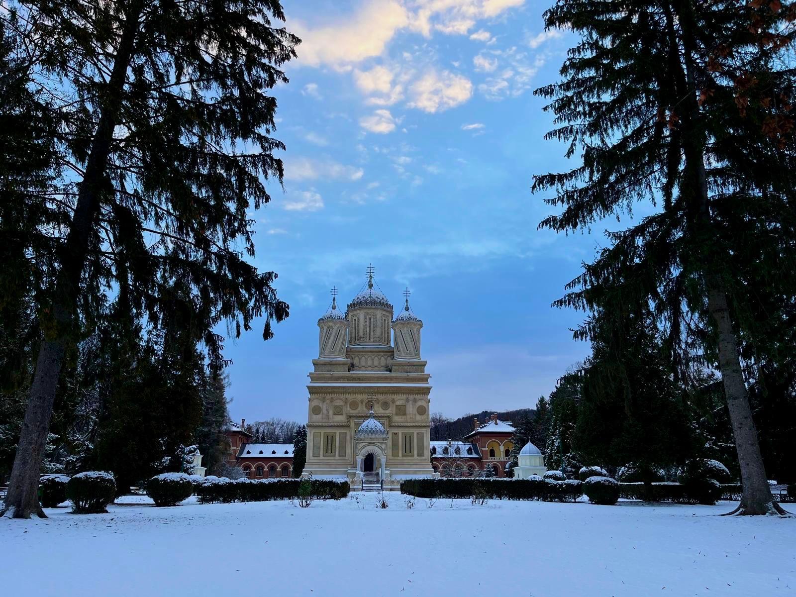(CATEDRALA VOIEVODALĂ ISTORICĂ DE LA CURTEA DE ARGEȘ panoramă fațada bisericii - foto Adrian Enache)