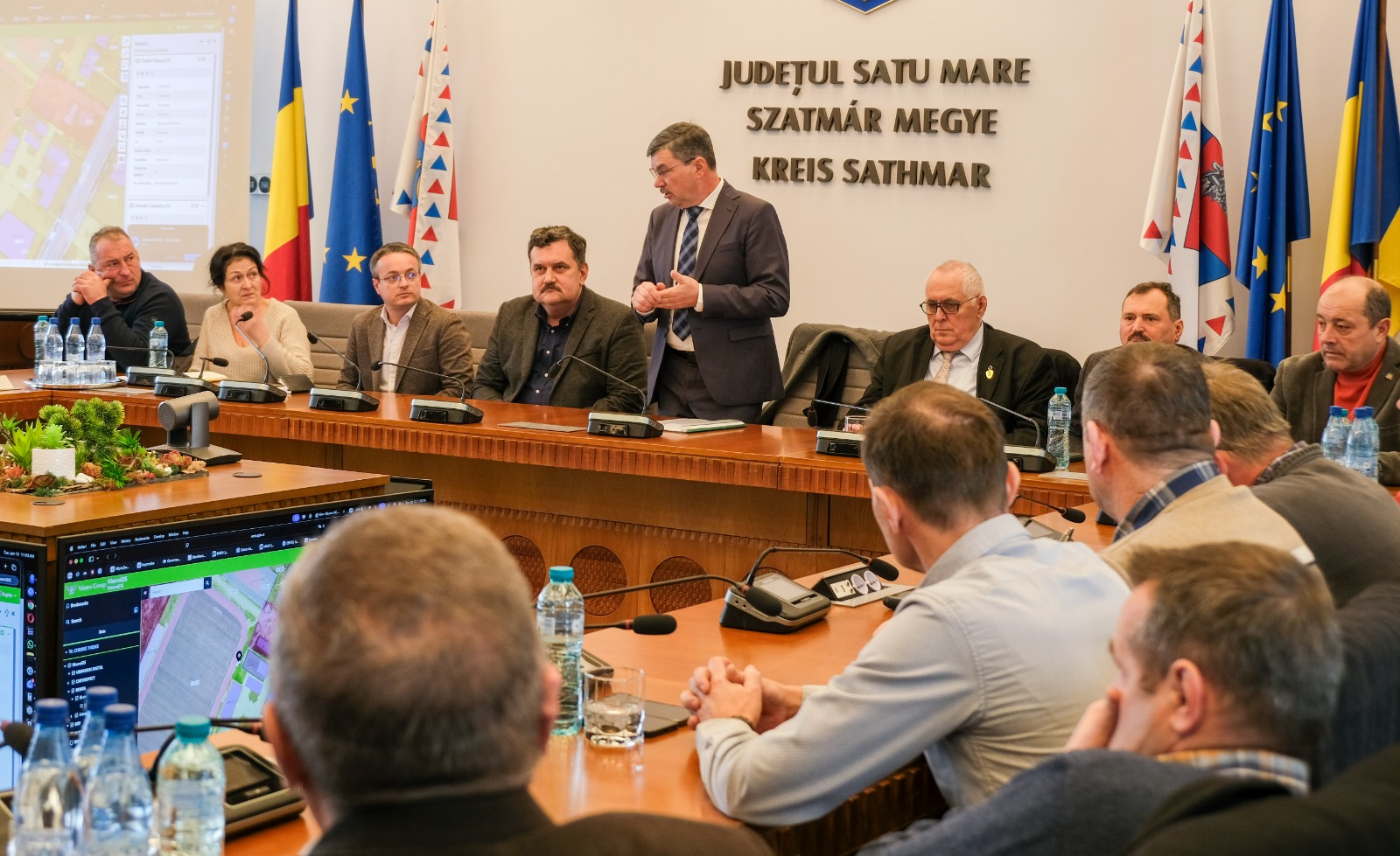 În cadrul reuniunii de lucru, președintele Consiliului Județean Satu Mare, Pataki Csaba, a subliniat importanța unui parteneriat solid între administrația județeană și autoritățile locale, invitând primarii prezenți la un dialog deschis privind provocările cu care se confruntă administrațiile din județ.