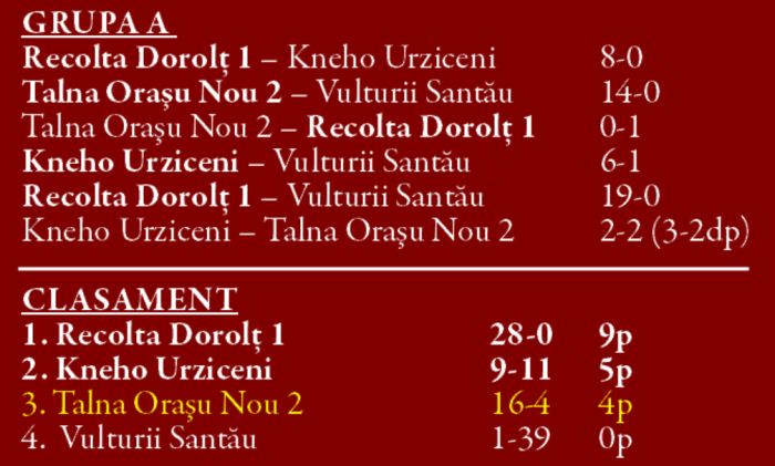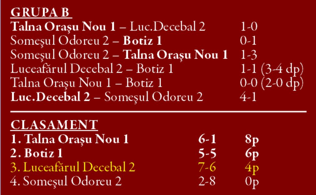 Din Grupa B, Talna Orașu Nou I a încheiat ziua fără înfrângere, iar alături de aceasta s-a calificat în continuarea competiției și Sportul Botiz I.
