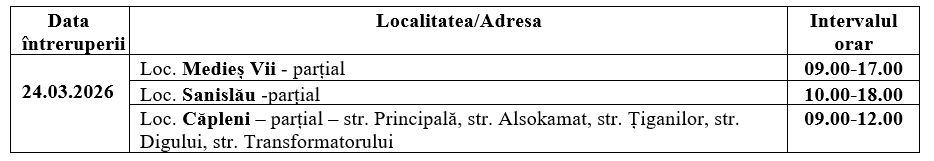 DISTRIBUȚIE ENERGIE ELECTRICĂ ROMANIA S.A. - Sucursala Satu Mare anunţă întreruperea alimentării cu energie electrică: